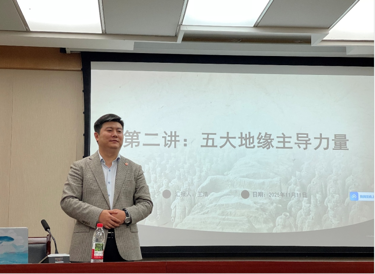 2025年11月11日,国别经济与国际商务研究中心再次邀请重庆市商务委现代服务业招商处处长王浩,为国际商务和金融研究生们带来“五大地缘主导力量”系列讲座的第二讲。本次讲座聚焦俄罗斯与欧洲两大板块,今天特别以俄乌战争为例,深入剖析其地缘政治特点及对国际商务的影响。